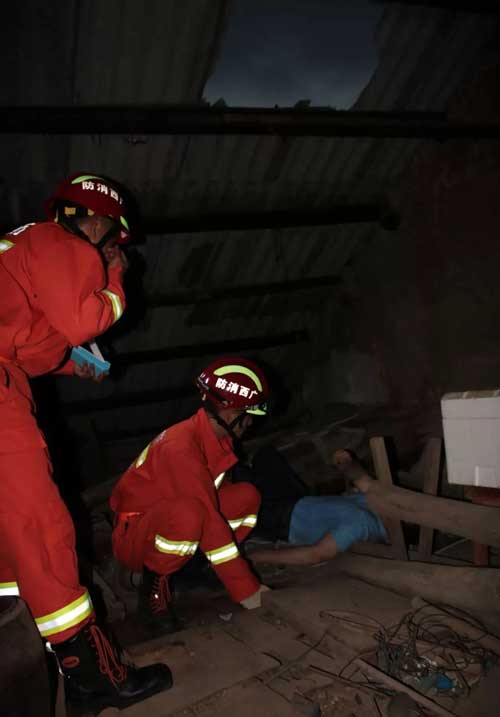 【导语】2019年4月26日19时左右,桂林市119指挥中心接到报警:桂林市兴安县青龙街一巷道一男子在维修房屋时不慎发生坠落,受伤被困。接警后,桂林消防迅速调派消防救援人员赶赴现场营救。